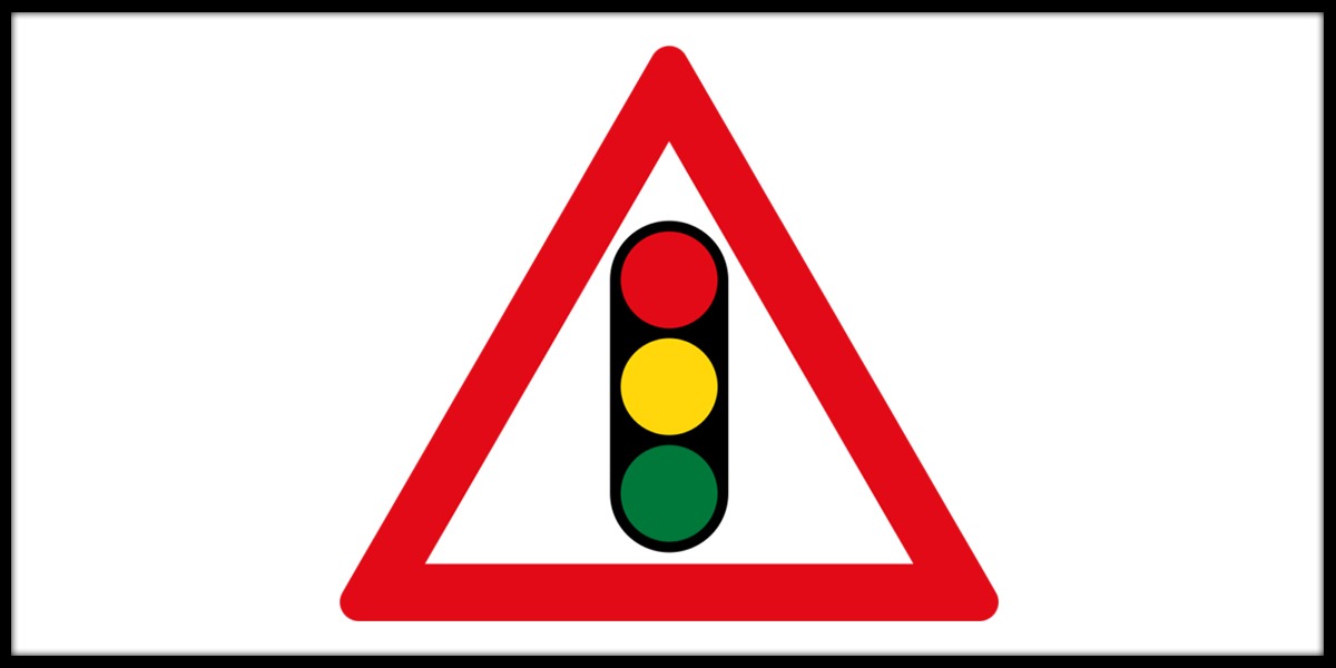 ![]() | There are traffic signals ahead. You must be ready to stop or change direction according to the colour and shape of the lights. You must also obey any other signs that may be displayed with the signals. |