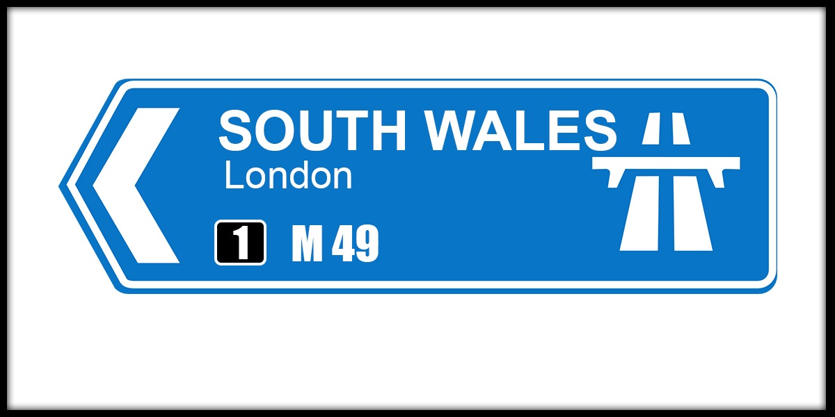 ![]() | You are on or approaching a junction with the M4, a motorway that connects London and South Wales. The sign shows the number and direction of the motorway and the destinations that can be reached by taking it. |